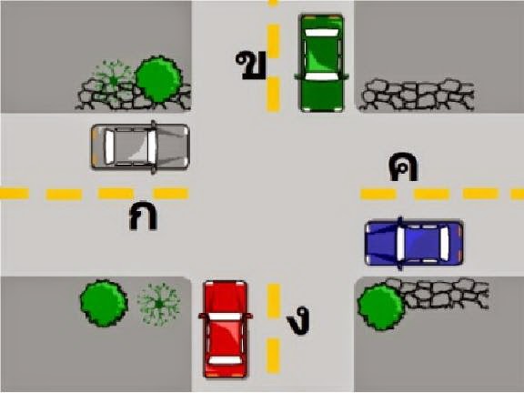 ก. หยุดรอให้รถคัน ข. ขับผ่านไปก่อน